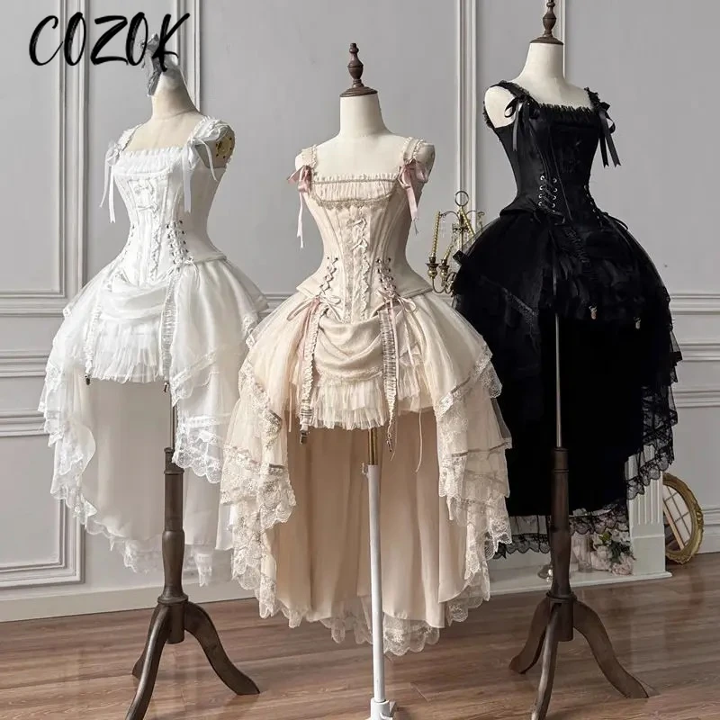 Victorian Gothic Lolita Jsk Dress Women Sweet Bow Lace Ruffle Flower Wedding Party Dress Japanese Vintage Elegant Princess Dress  Read more