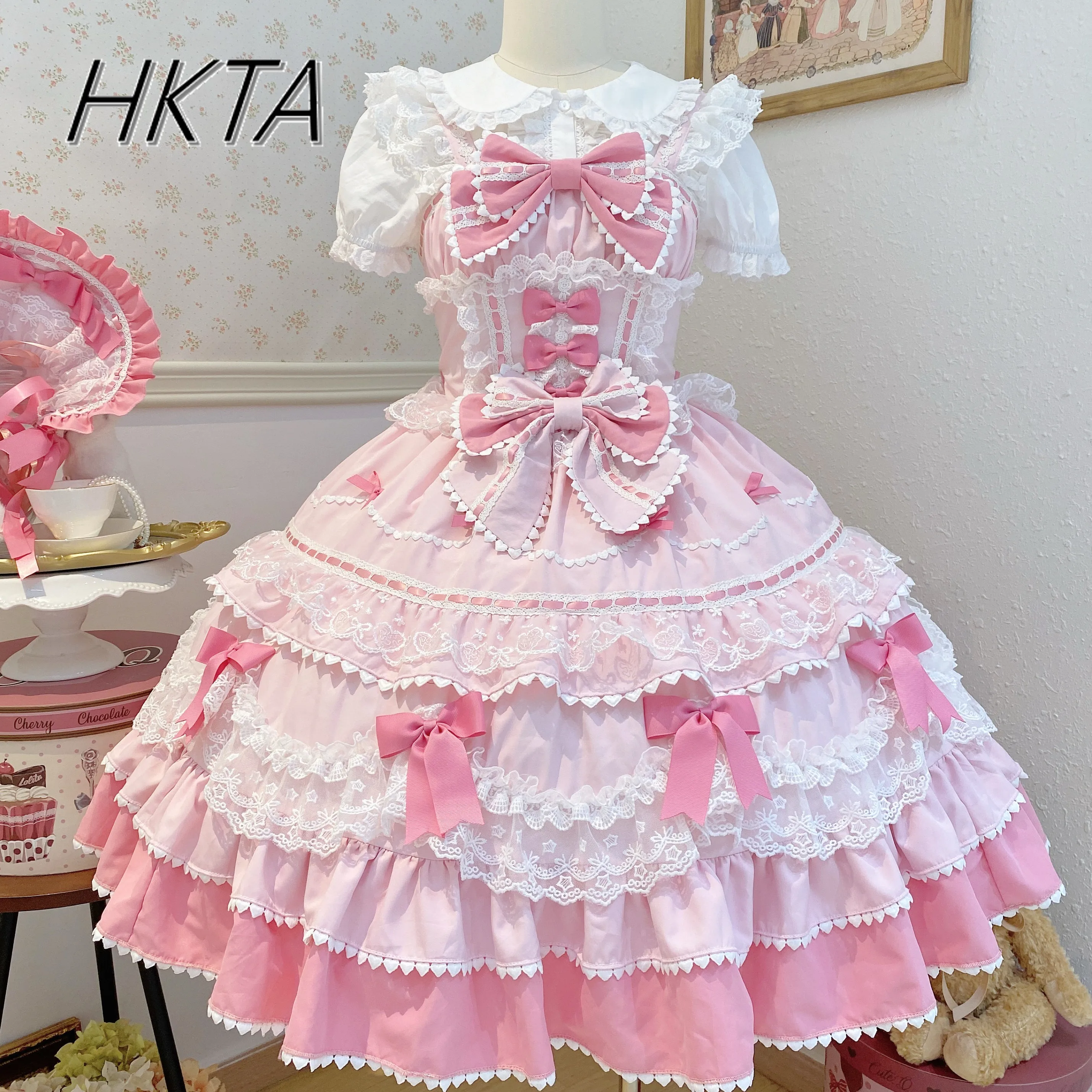 2025 Summer New Kawaii Sweet Lolita Dress Cute Princess Jsk Suspender Dress Bow Lace Sweet Playful Laminated Long Cake Dress