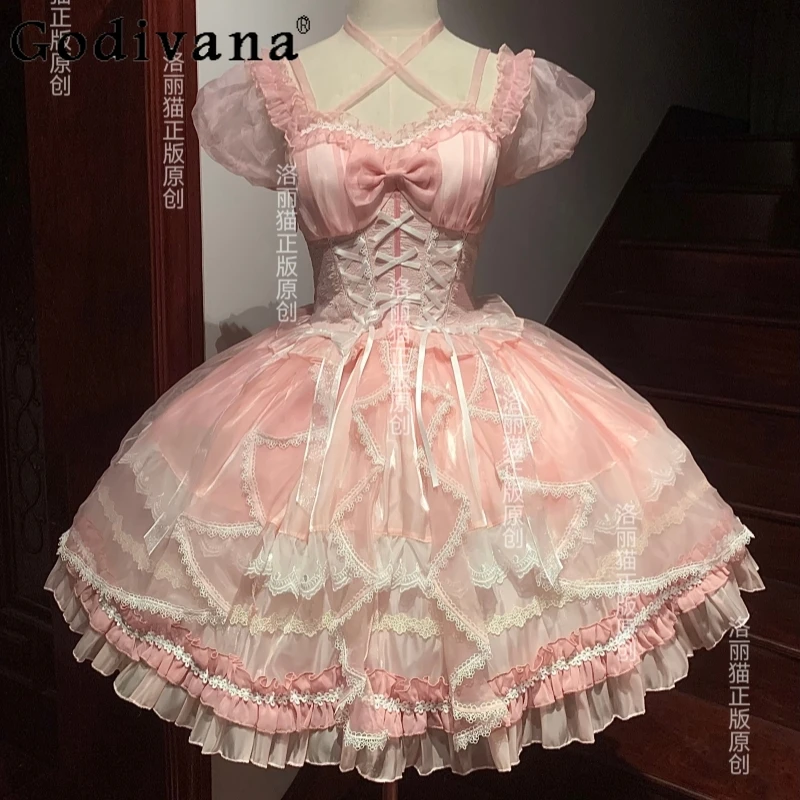 Sweet Lolita Cosplay Japanese Jsk Dress Kawaii Cute Lace Princess Birthday Bow Tutu Dresses Kawaii Women Elegant Daily Costume