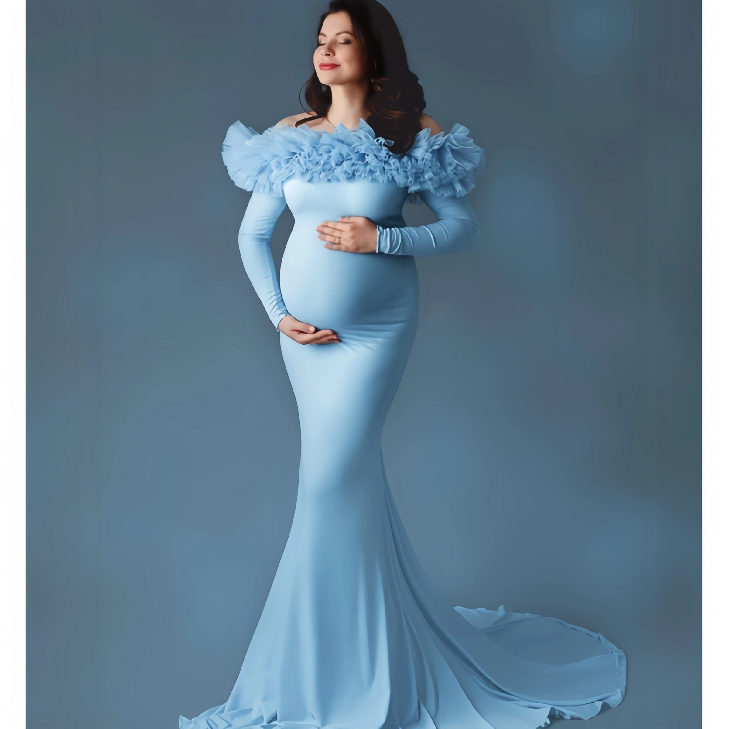Elegant Sky Blue Maternity Dress for Baby Shower Mermaid Photo Vestiti Sposa Ruched Long Sleeve Pregnant Women Gown Customized