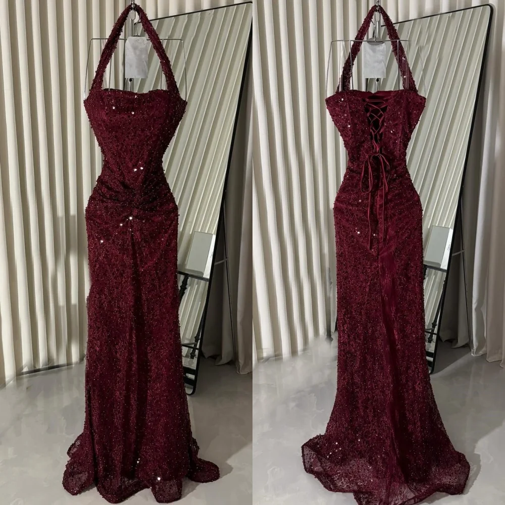 Customized Sequined Sparkle Formal Evening Halter Lace-up Long Dresses Bespoke Occasion Charming Party Gown Modern Style