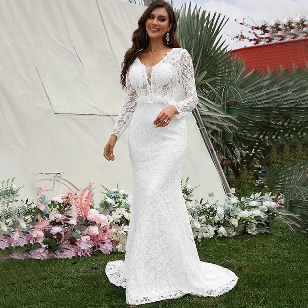 Exquisite Lace Applique Mermaid Wedding Dress Long Sleeve V-Neck Handmade Three-dimensional Flowers Bridal Illusion Gowns  Read more