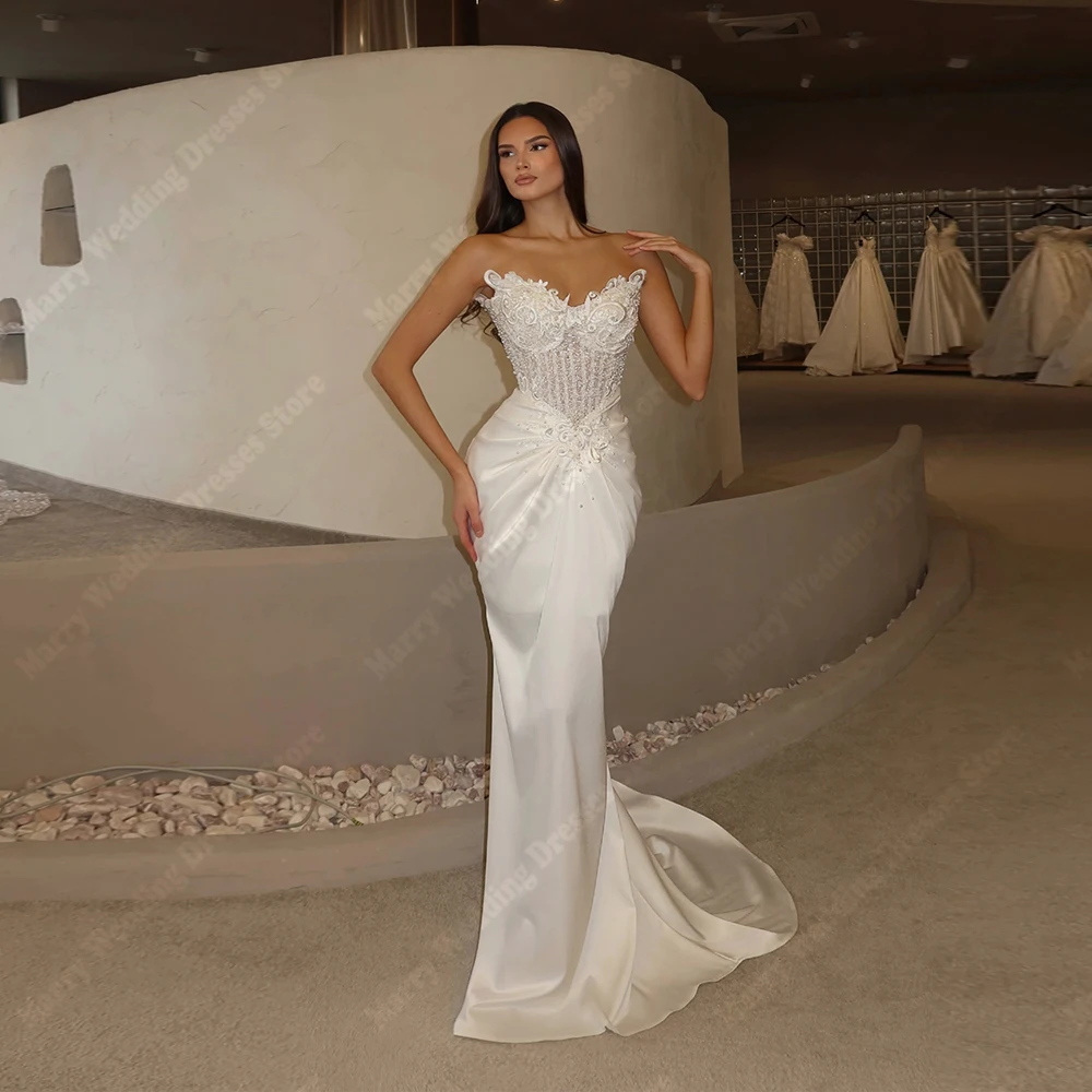 Exquisite Women Wedding Dresses Fashionable Lace Applique Mermaid Bridal Gowns Sexy V-Neck Sleeveless Robe De Mariée Customized