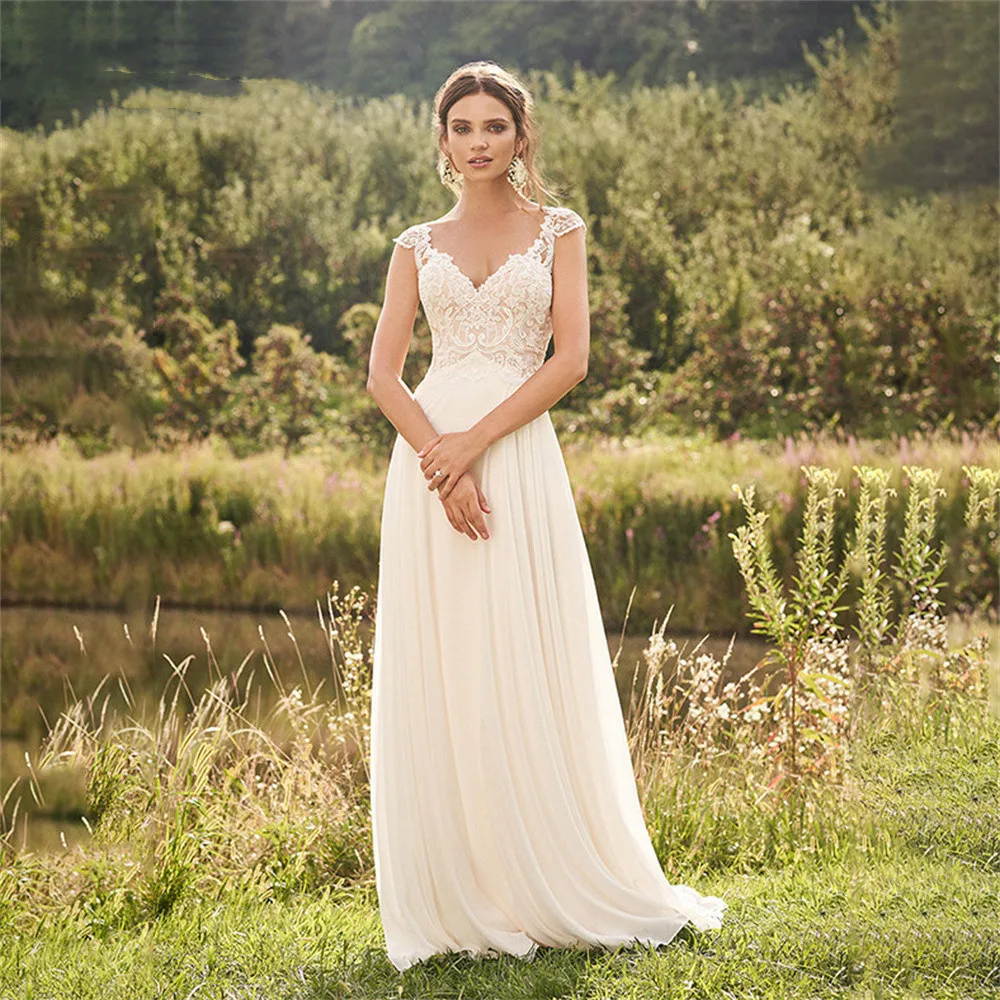 Customized A Line Women Wedding Dresses BOHO Princess Bridal Gowns Lace V Neck Formal vestidos de novia