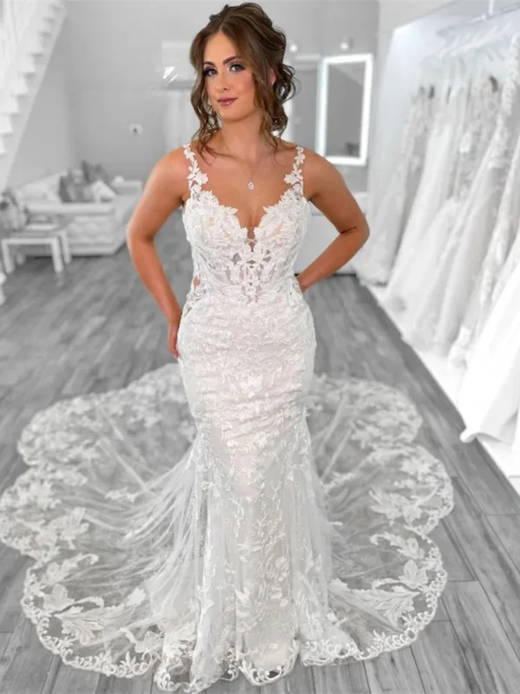 Boho Mermaid Wedding Dresses for Women Open Back V-Neck Lace Spaghetti Strap Bridal Gown Vestidos De Novia Customized