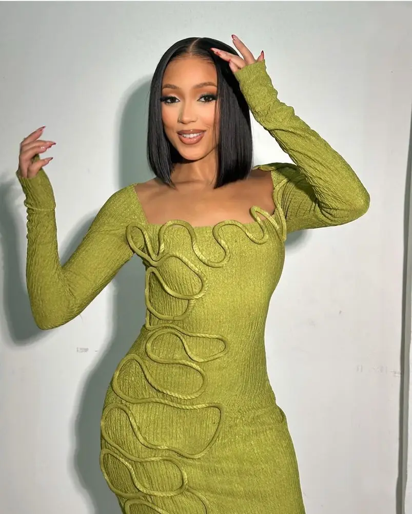 Summer 2025 Women Olive Green Long Dress Cross-border Pleated Twist Rope Decorative Square Neck Long Sleeve Slim Fit Maxi Dress
