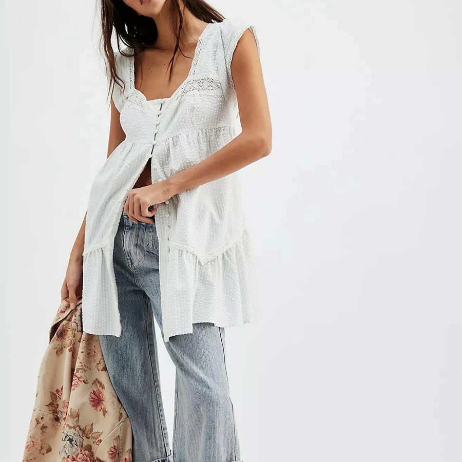 Combhasaki Women Summer Square Neck Short Cap Sleeve y2k Solid Color/Floral Button-down Loose Ruffle Hem Flowy Vacation Dress