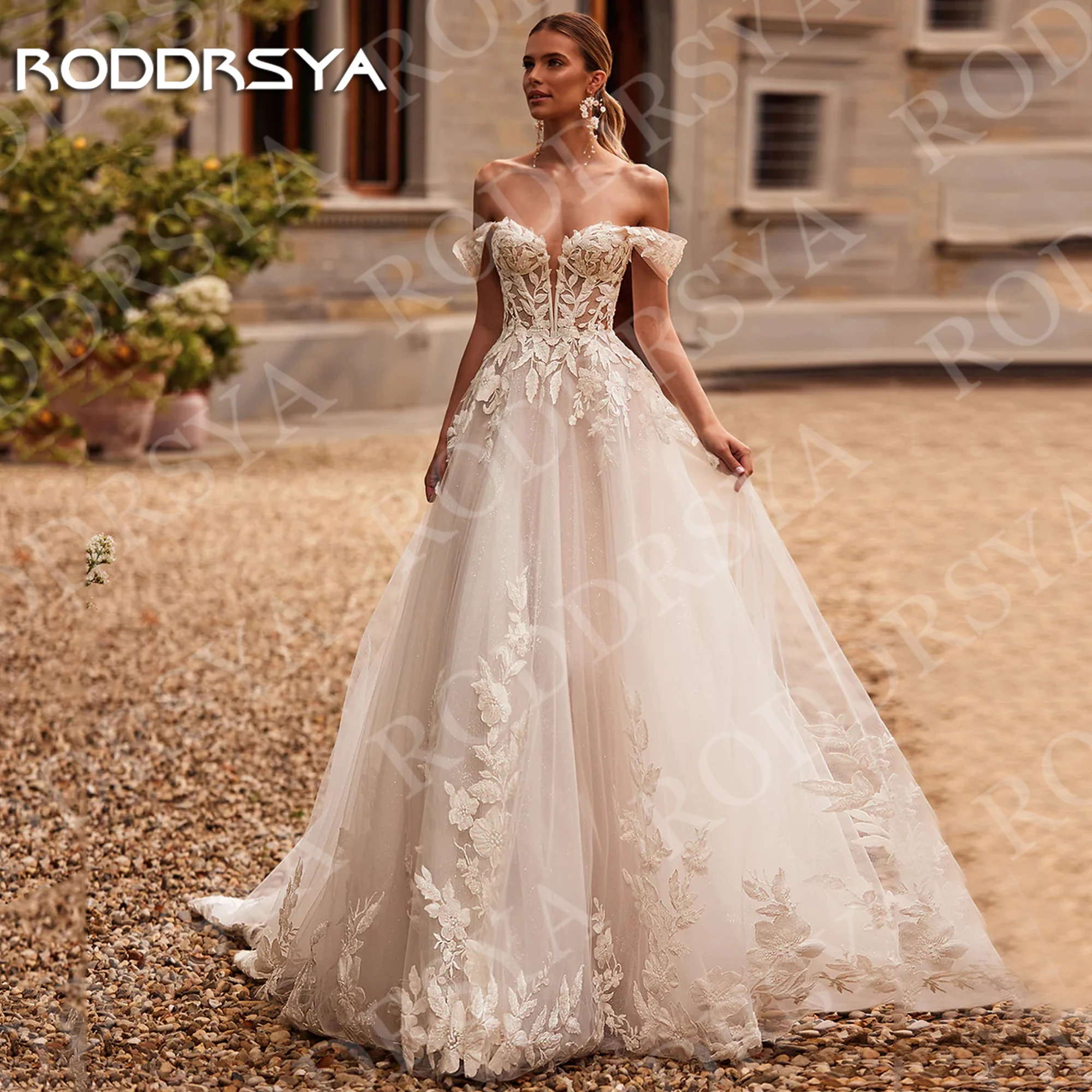 RODDRSYA Charming Off the Shoulder Wedding Dresses Applique Lace robe de mariée Sweetheart Tulle A Line Bridal Gown Customized