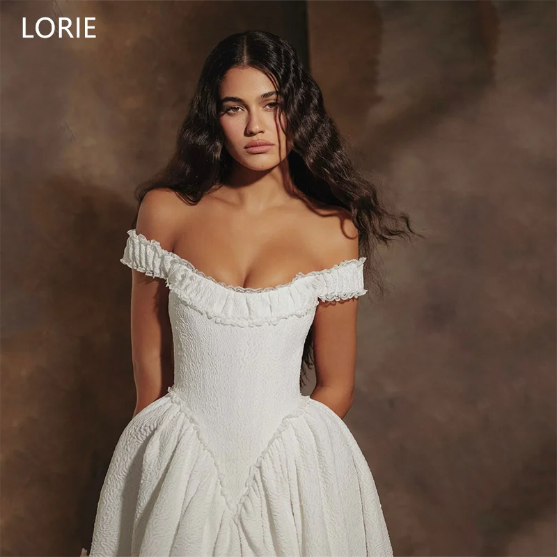 LORIE Off Shoulder Lace A-Line Wedding Dresses Strapless Long Train Bride Prom Gown Elegent Floor-Length Bridal Gown Customized