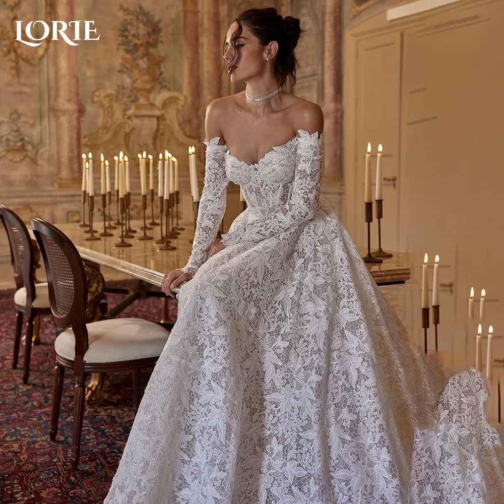 LORIE Vintage Lace Wedding Dress Off Shoulder Long Sleeve A-line Bridal Gown Sweetheart Princess Ball Bride Dress Customized