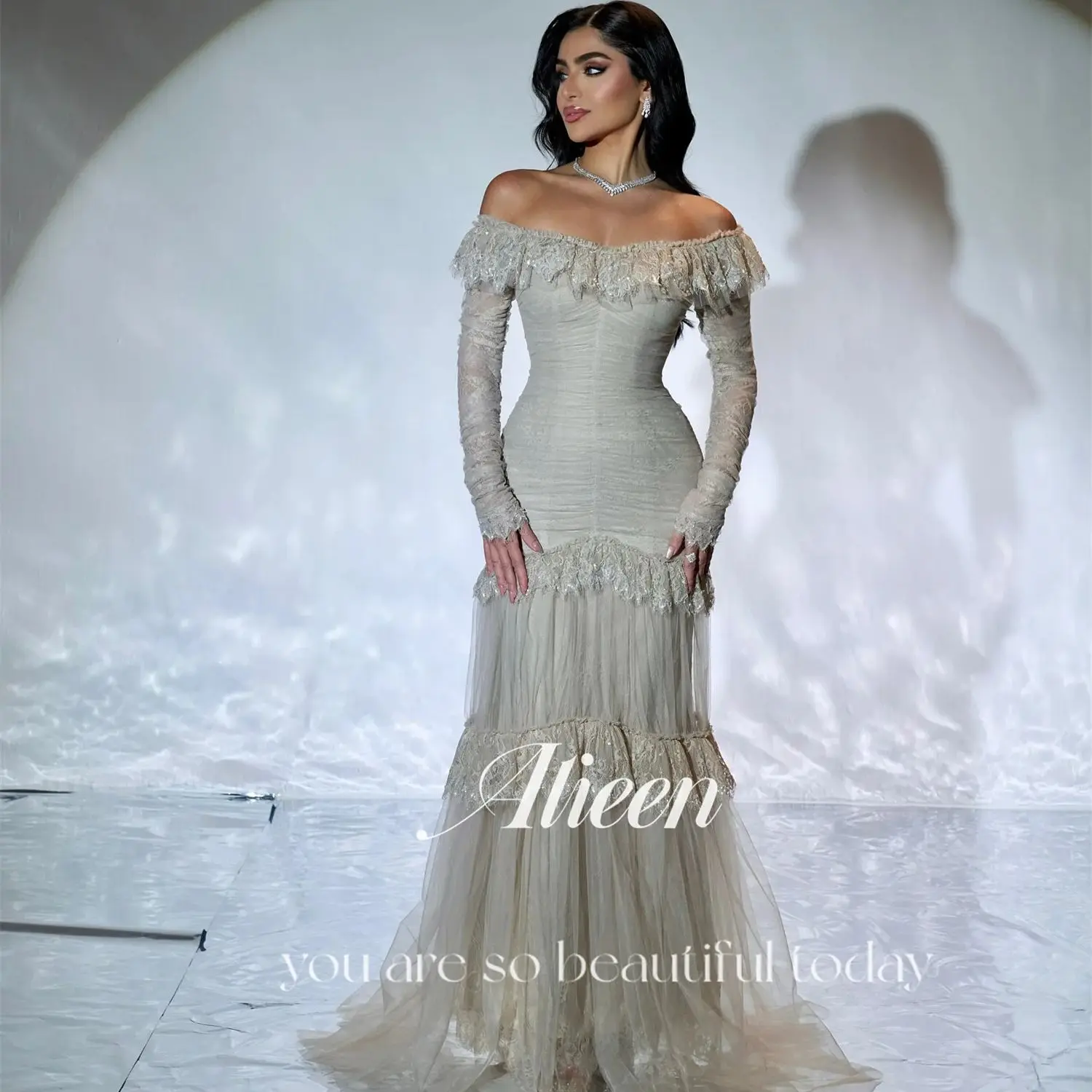 Aileen Customized Prom Dresses 2025 Grey Off-shoulder فساتين سهرة Women Evening Dresses Mermaid Vestidos De Festa Lace Dress