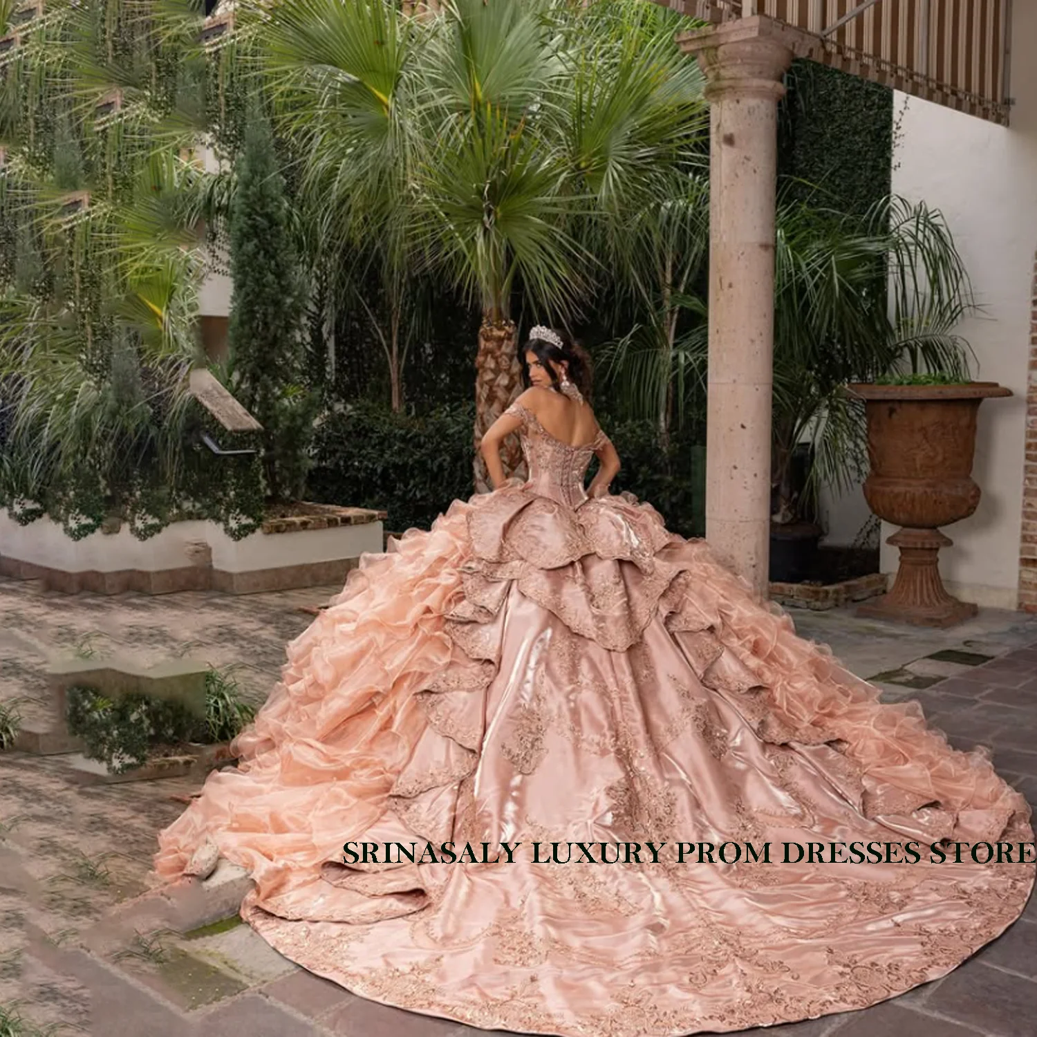 Mexico Customized Luxury Ball Gown Quinceanera Dresses Lace Appliques Beading Off Shoulder birthday Sweet 16 Vestidos De 15 Años