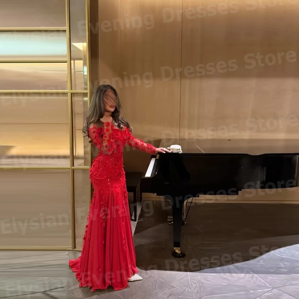 Graceful Women's Mermaid Off Shoulder Evening Dresses Customized Robe De Soirée Prom Gowns Long Sleeve Lace Vestidos Para Mujer