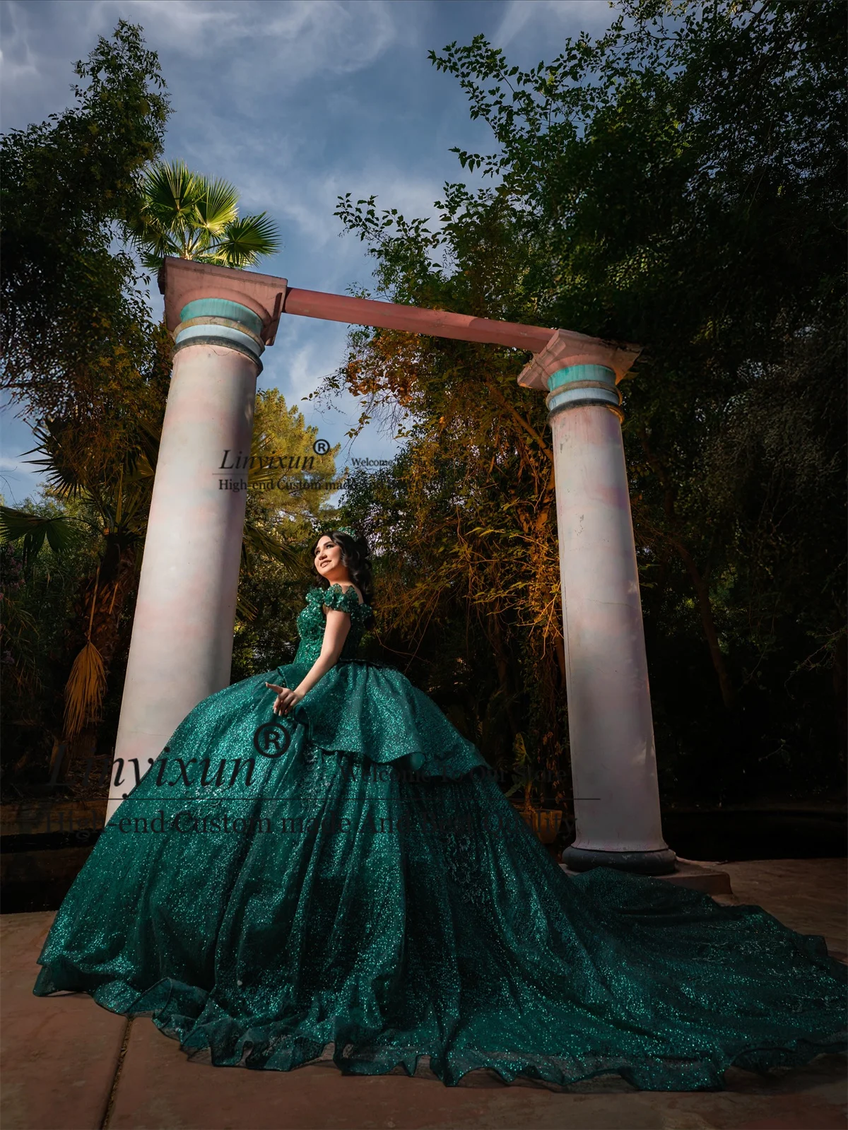 Mexican Glitter Quinceanera Dresses With Appliques Lace Sweet 16 Ball Gown Off Shoulder Vestidos de quinceanera Customized