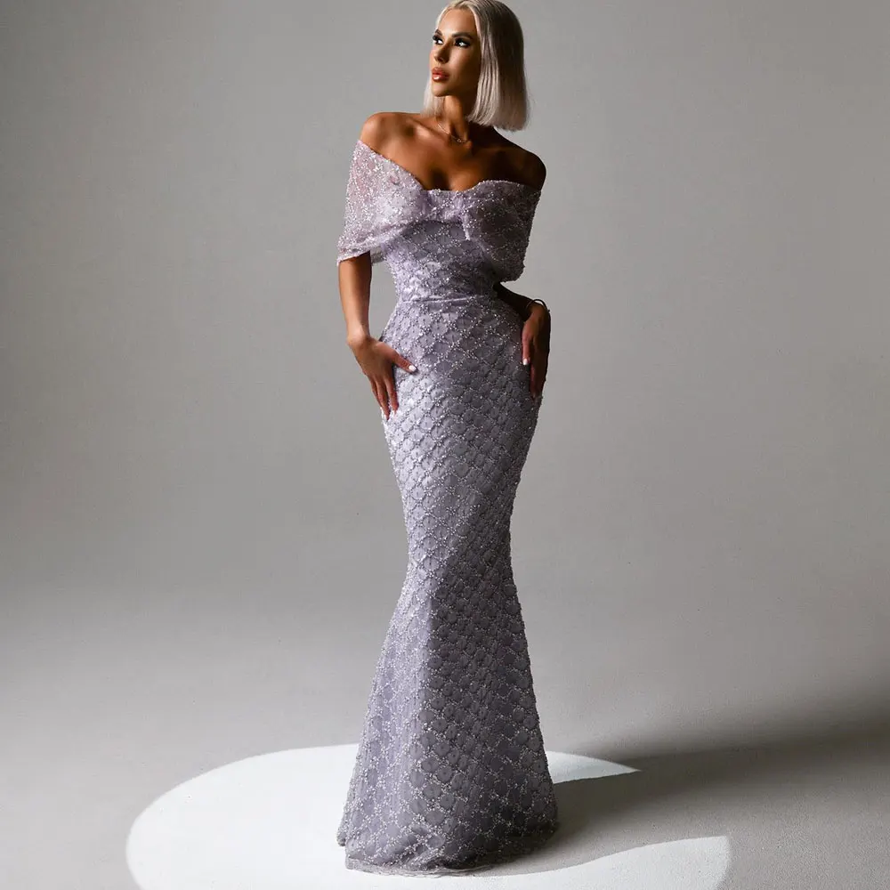 Elegant Mermaid Evening Gown Off The Shoulder Lace Bow Fashion Formal Occasion Romantic Vestidos Para Mujer Elegantes Y Bonitos
