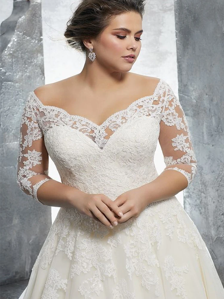 Long Sleeve Lace Wedding Dresses Ball Gown Tulle Customized Off Shoulder Bride Bridal Weding Weeding Dresses Wedding Gowns