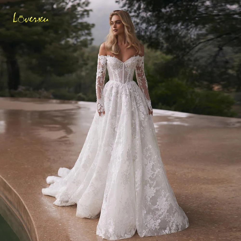 Loverxu A-Line Delicate Wedding Dresses Off The Shoulder Vestido De Novia Lace Appliques Stunning Custom Made Bridal Gowns