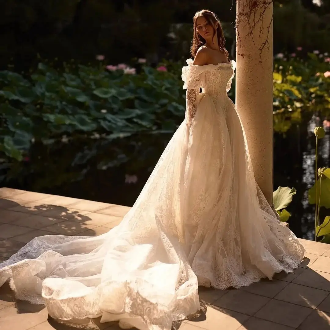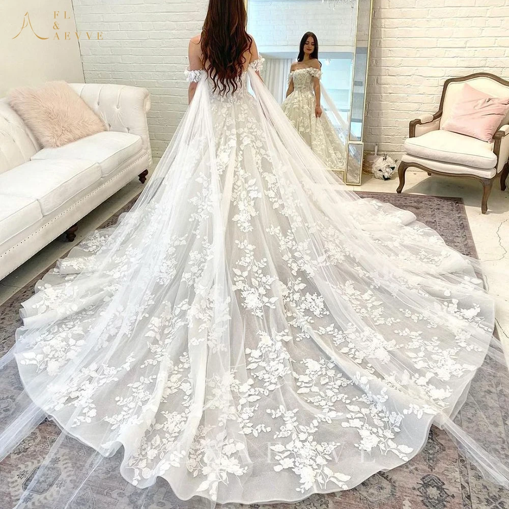FL&AEVVE Princess Lace Wedding Dresses For Women Boho Off the Shoulder Appliques Bridal Dress Sweetheart Ball Gown Customized