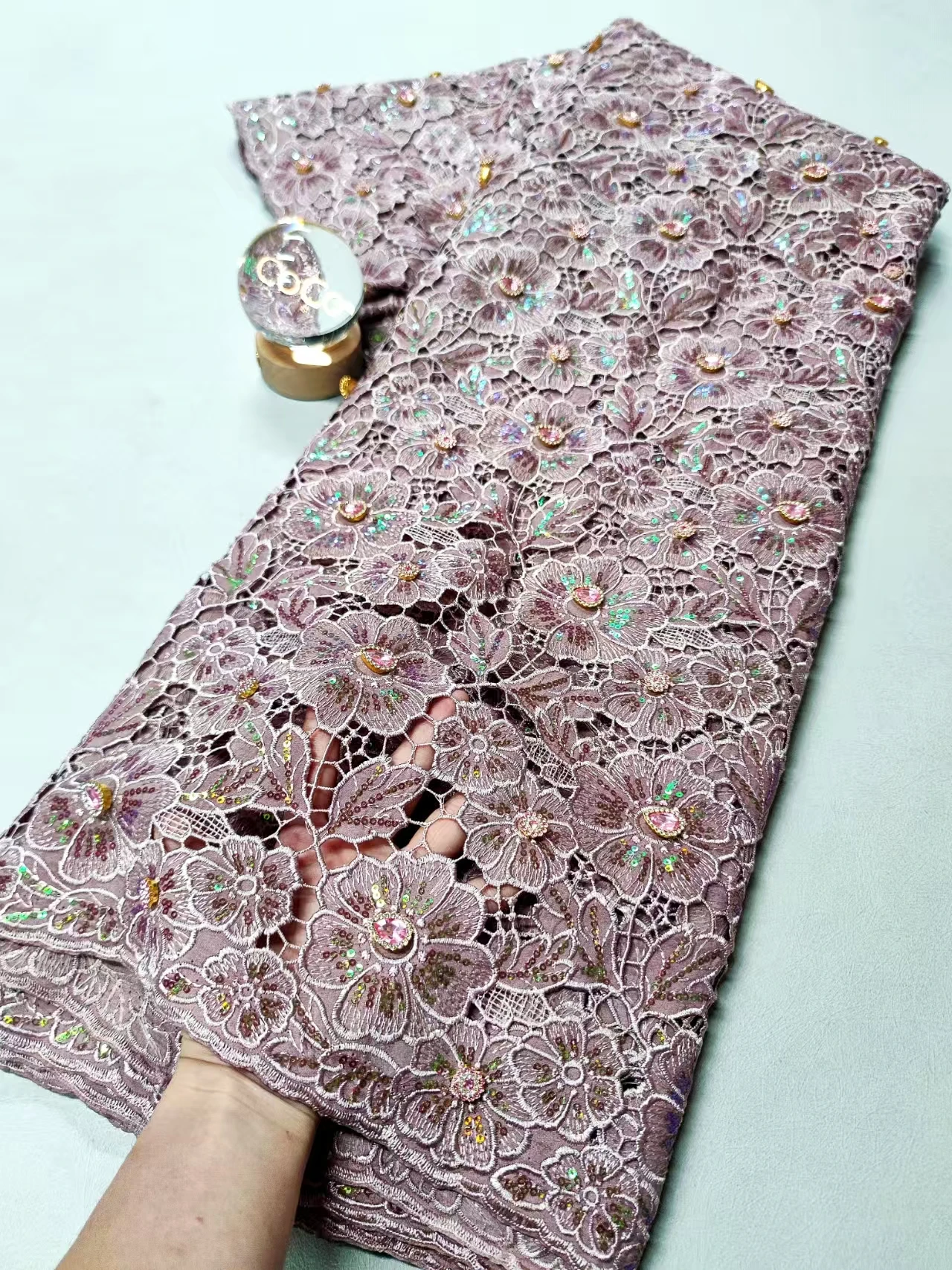 2025 High-Quality Africa Nigerian Sequins Cotton Embroidery Lace Fabric Tulle for Wedding Party Dress Chiffon XL093 5Yards