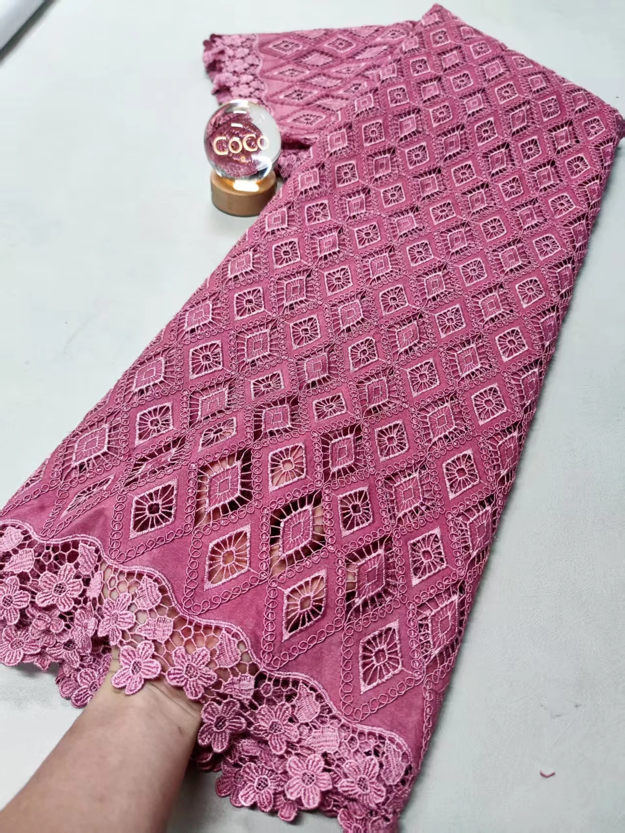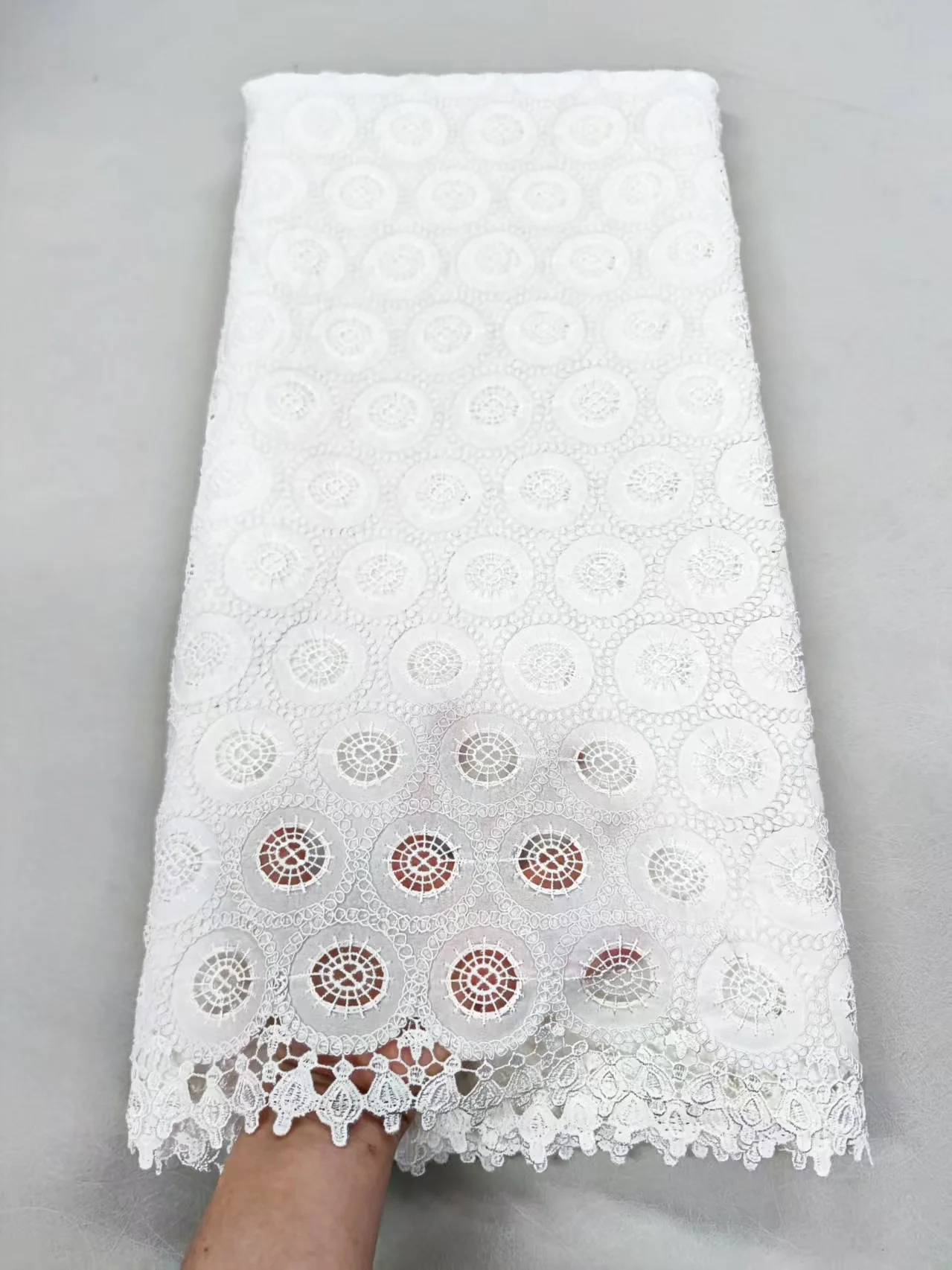 2025 High-Quality Africa Nigerian Sequins Cotton Embroidery Lace Fabric Tulle 5 Yards for Wedding Party Dress Chiffon XL077