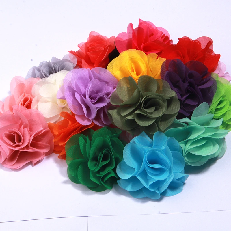 10Pcs 2.6" Tulle Cute Handmade Cored Organza Chiffon Fabric Artificial Gauze Flower Wedding Dress Hats Headband Brooch DIY Home