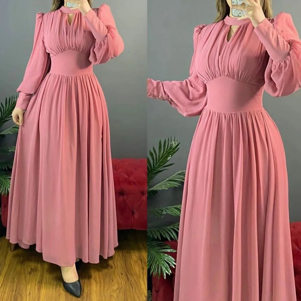 Spring Autumn Mujer Vestidos Solid Full Sleeve O-neck Casual Chiffon Dress Women Muslim Long Dress Solid Loose Maxi Dresses