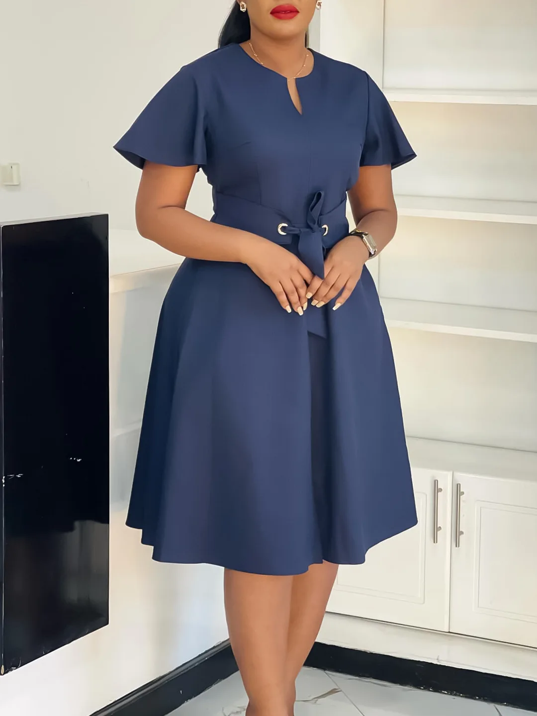 Women's plus Size Swing Dress Summer 2025 Fashion Temperament Solid Color Lace-Up Short-Sleeved Elegant Casual Maxi Dress  Read more