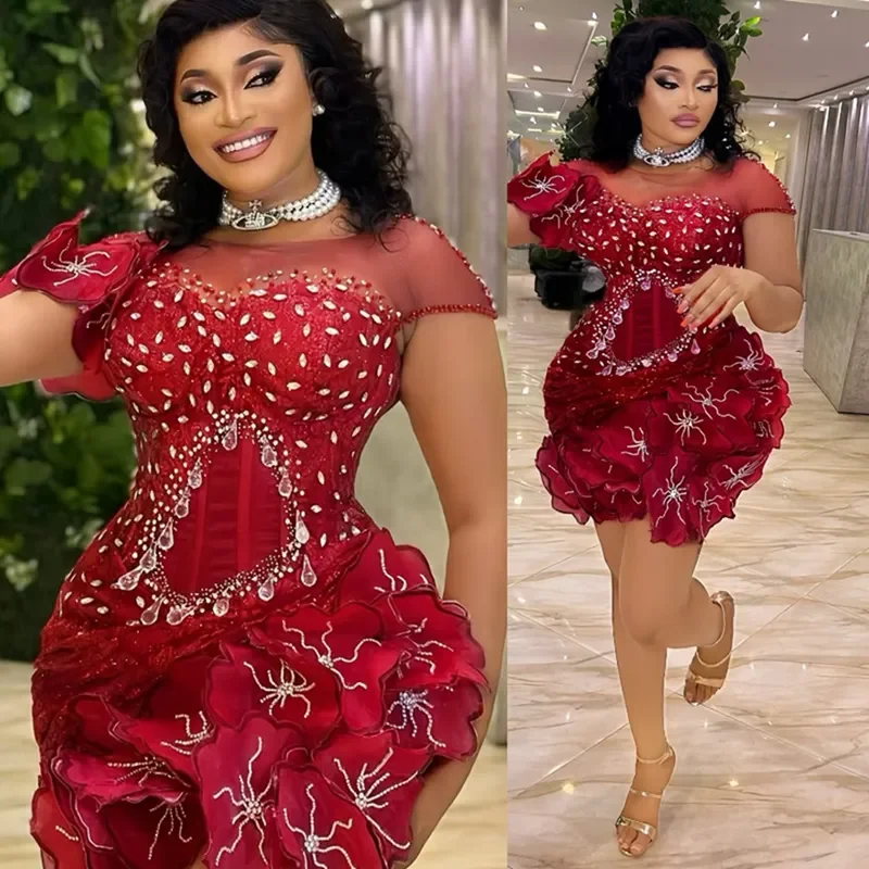 Plus Size Off-the-Shoulder Red Lace Appliques Short African Prom Party Dress 2026 Evening Pageant Gown Birthday Robe De Soriee  Read more