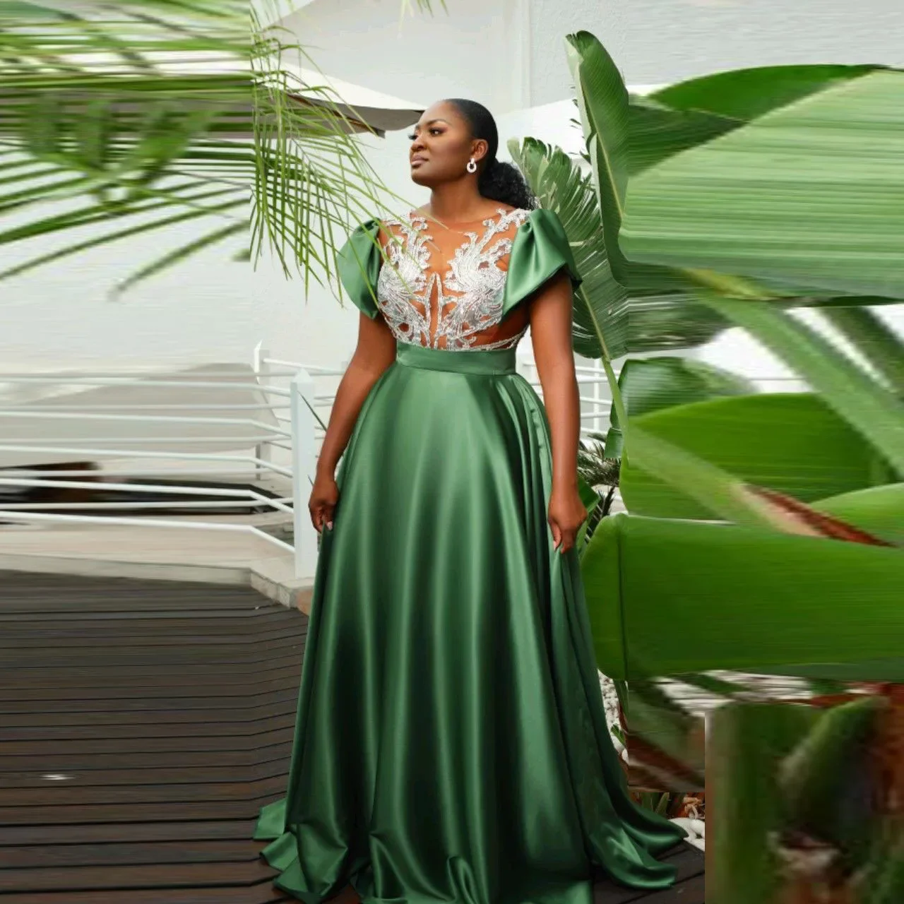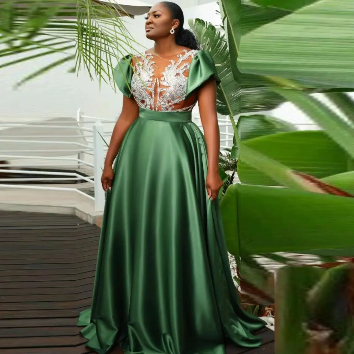 Green Plus Size Formal Party Dress A Line Evening Gowns Short Sleeves Black Girls Prom Dresses African Women Lace See Through  Read more