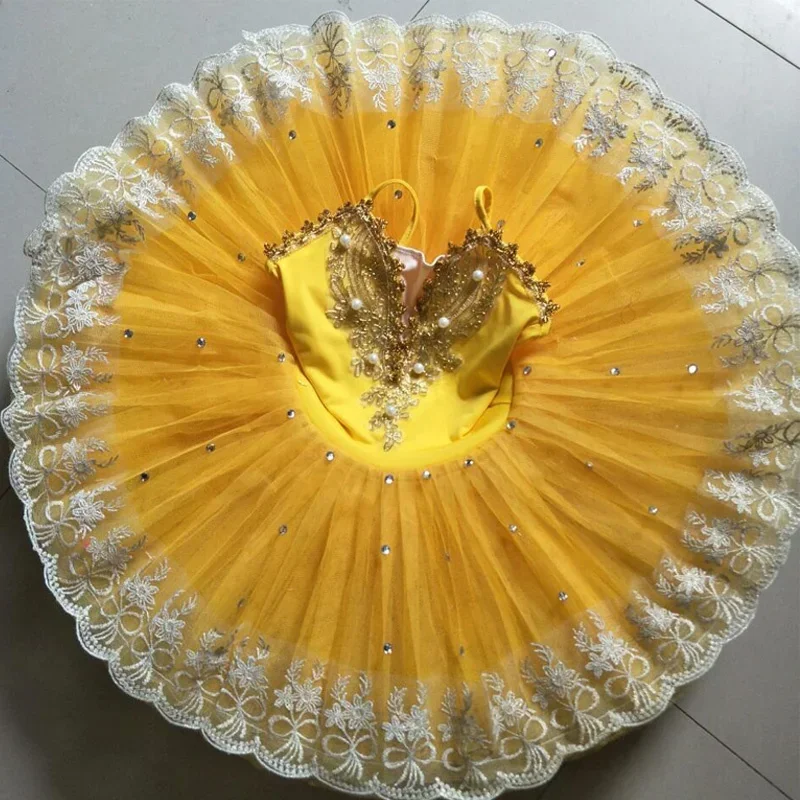Professional Children Ballet Dress Yellow Flower Platter Female Tutu Swan Lake Dance Performance Costumes Ballerina Party Dress