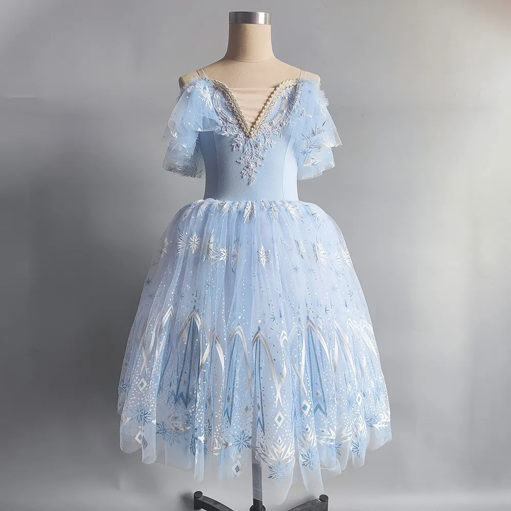 Professional Ballet Tutu Girls Blue Pink Frozen Long Dress Ballerina Party Dress Adult Women Child Kids Ballet Dance Costume