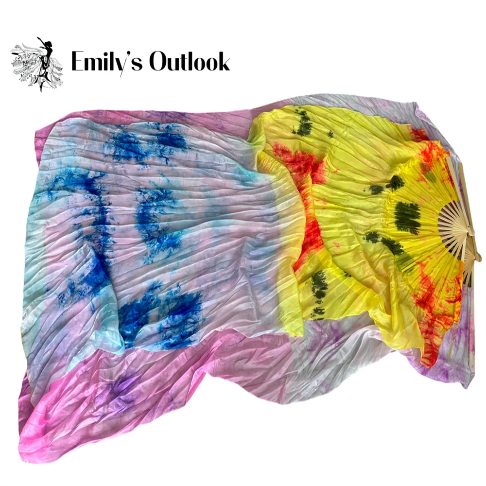 Professional Big Dance Fan Flutter 36cm Bamboo Rib 114cm Width Exta Wide Belly Dance Veil 100% Silk Hand Tie Dye Customized 1.5M
