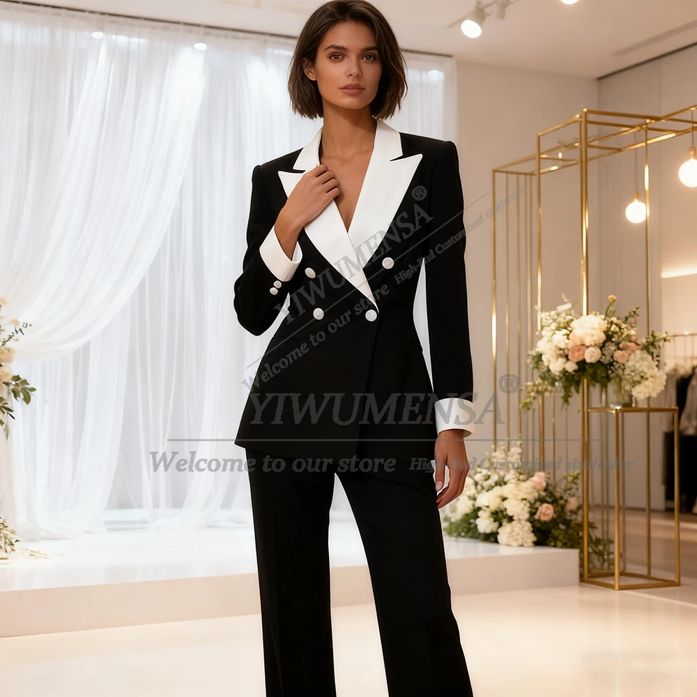 Double Breasted Women Suit 2 Piece Jacket Pants Fit White Lapel Blazer Customizd Lady Business Party Tuxedo Bride's Mother Dress