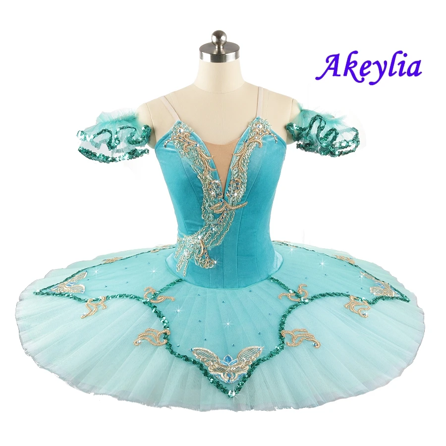 YAGP dress Blue green fairy Professional Ballet Tutu female Competitons or Performance Ballet pancake Stage Costumes for Women