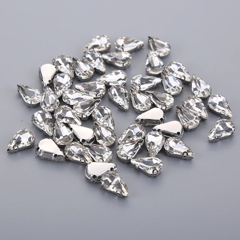 Multi Size Sewing Glass clear crystal Silver claw Base Rhinestone DIY wedding gown Dress Headdress water drop Beads