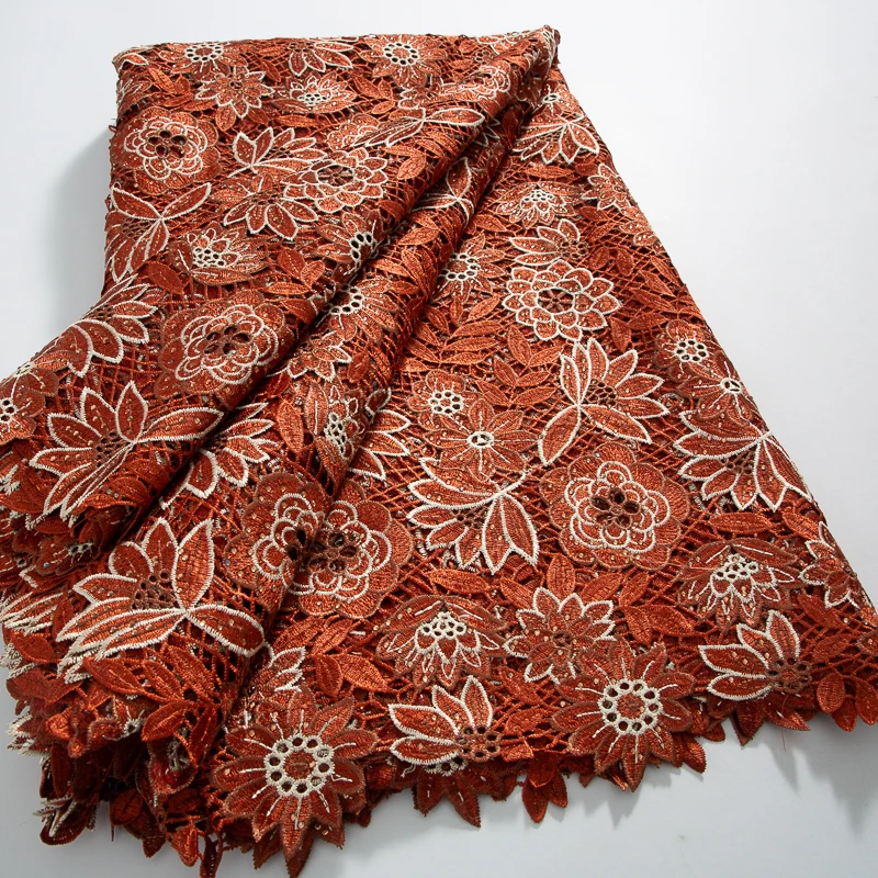 Latest Nigerian Water Soluble Lace Sequins Fabric 2025 High Quality Elegant African Cord Guipure Lace Fabric for Wedding Dress A
