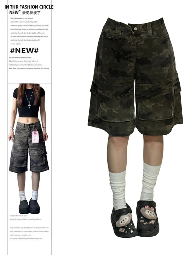Summer Women Goblin Core Camouflage Jorts Abi Y2K 2000s Knee Length Denim Shorts Japanese Harajuku Grunge Jean Pants Cyber Punk