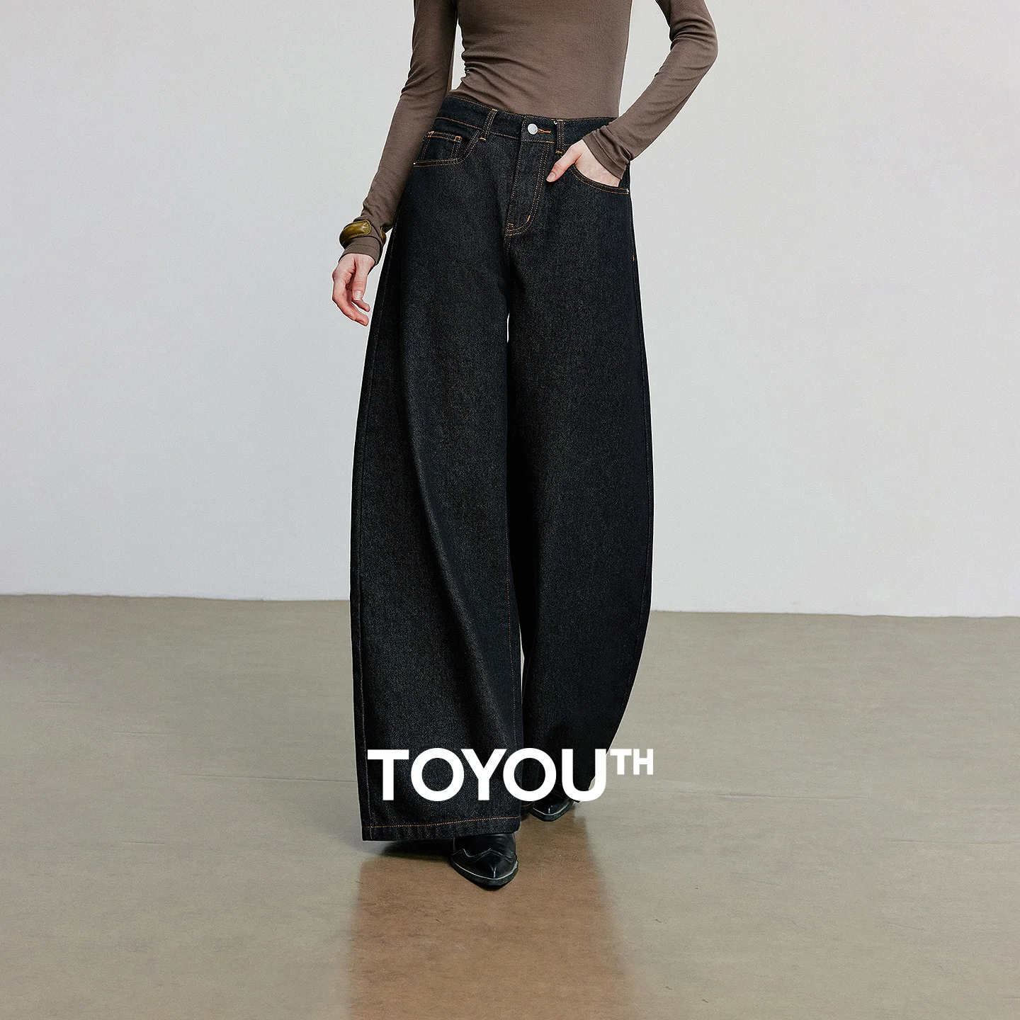 TOYOUTH Women Denim Jeans 2025 Autumn New loose Curved Banana Wide Leg Pants
