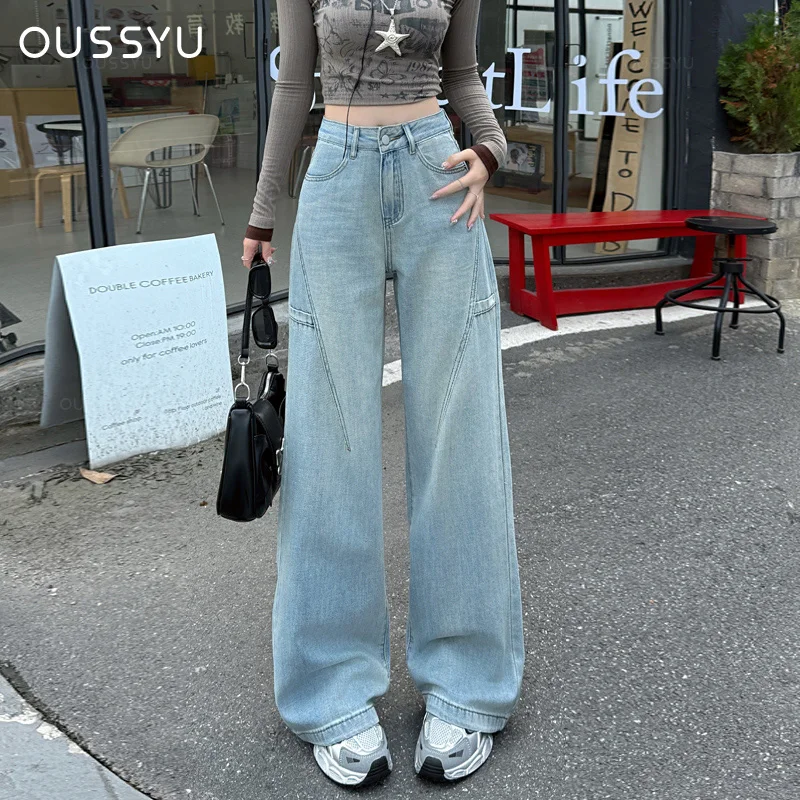 High Waisted Wide Leg Jeans Women Cotton Retro Denim Y2k Loose Fashion Design Sense Pant Streetwear Baggy Straight Trouser Woman