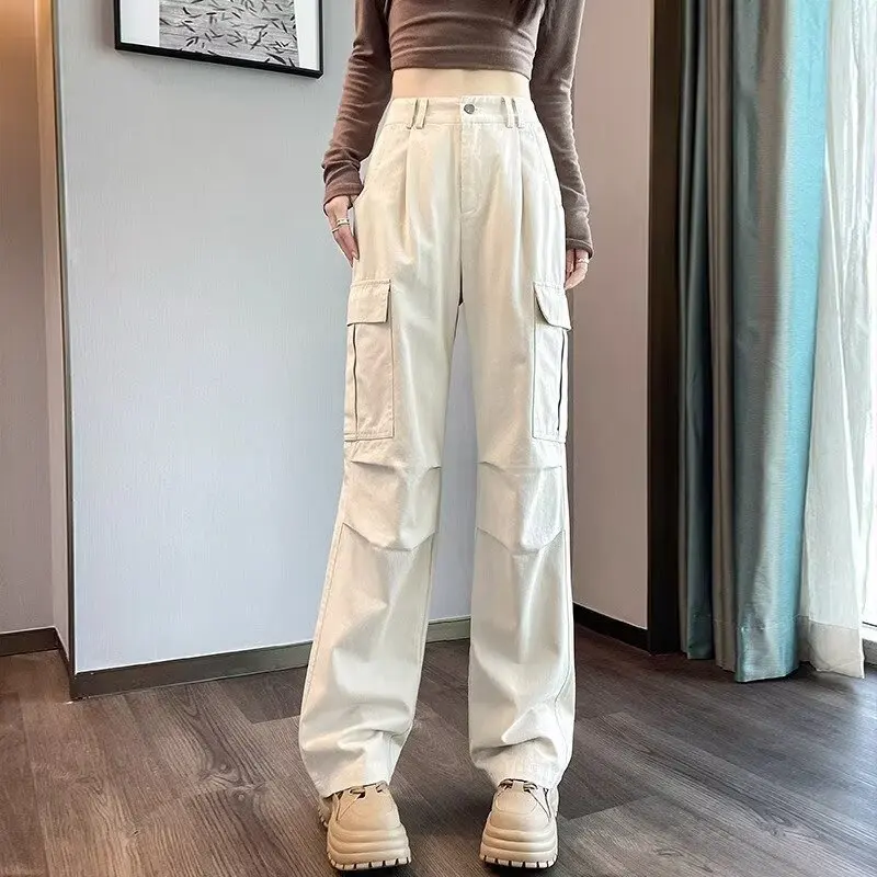 Ins Trendy American Straight Leg Casual Cargo Pants for Women Summer Autumn 2025 New Multi Pocket Narrow Version Wide Leg Pants  Read more