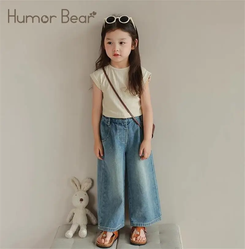 Humor Bear Girls’ Jeans Kids Clothing Summer Baggy Multi-pocket Elastic-waisted Long Jeans Wide-leg Pants Girls Pants