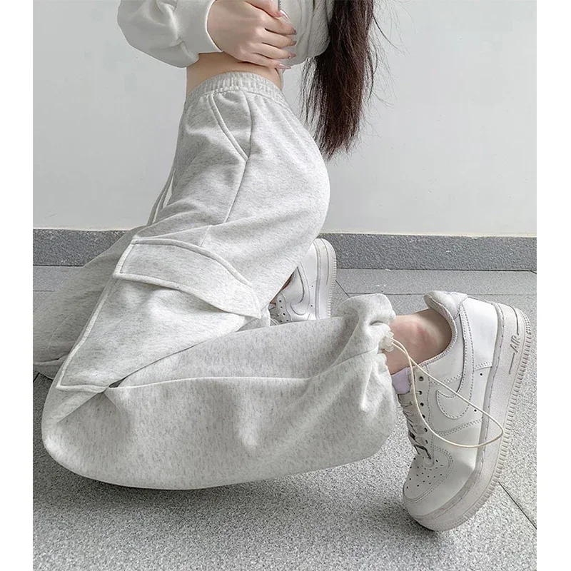 S-3Xl Sweatpants Women Streetwear Oversized Cargo Pants Harajuku Korean Black Wide Leg Joggers High Waist Pockets Baggy Trousers
