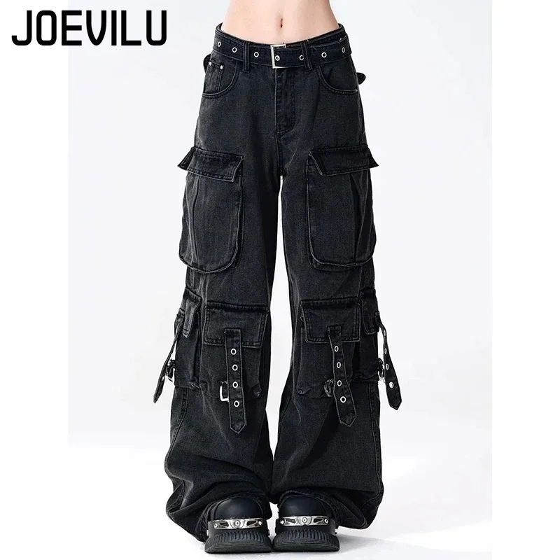 Y2K Black Cargo Pants for Women Straight Leg Jean Edgy Style Pocket Trousers Streetwear 2000s Aesthetic Grunge Pants Pantalones  Read more