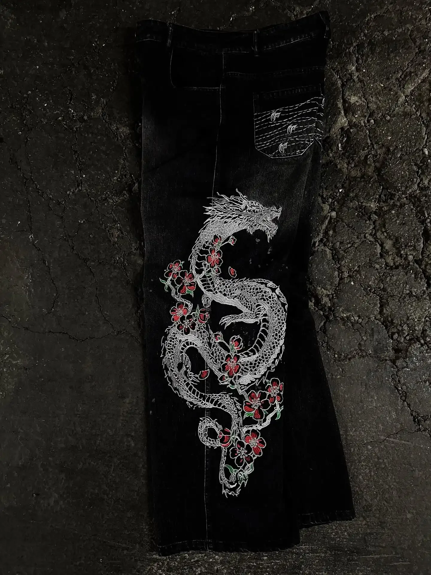 Y2K black fashion dragon pattern european youth pants women's city casual jogging pants Harajuku Hip Hop embroidery cargo pants  Read more