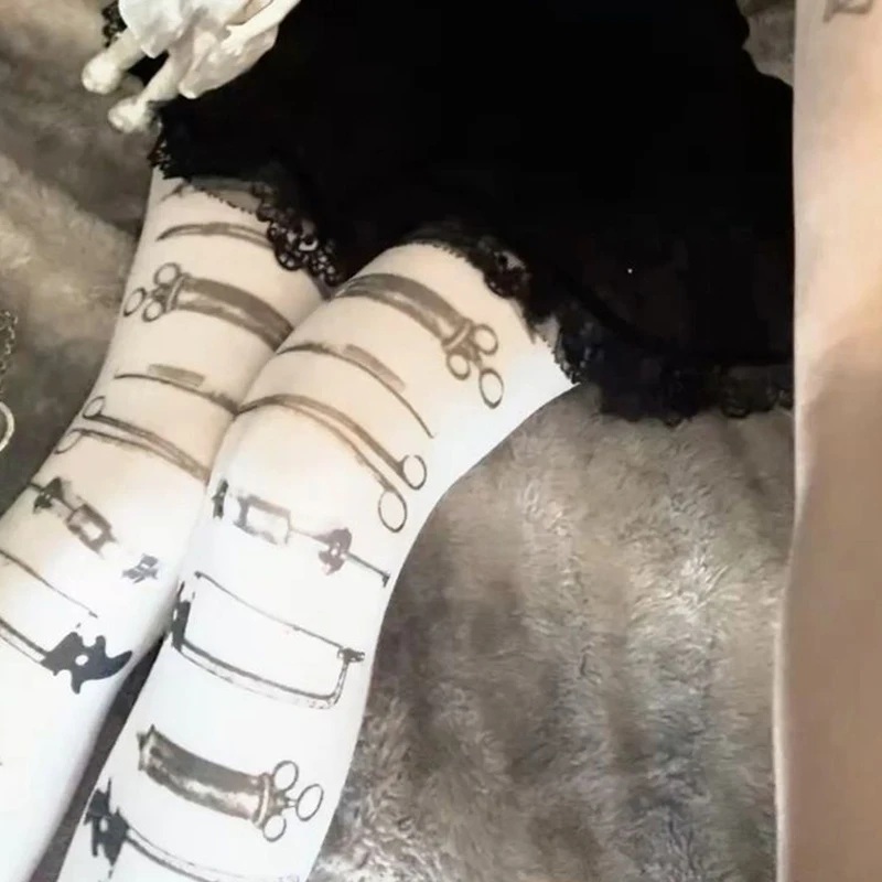 Kawaii cute retro 2000s classic style printed women's jumpsuit Japanese sweet Kawaii slim fit Lolita white thigh high socks Emo