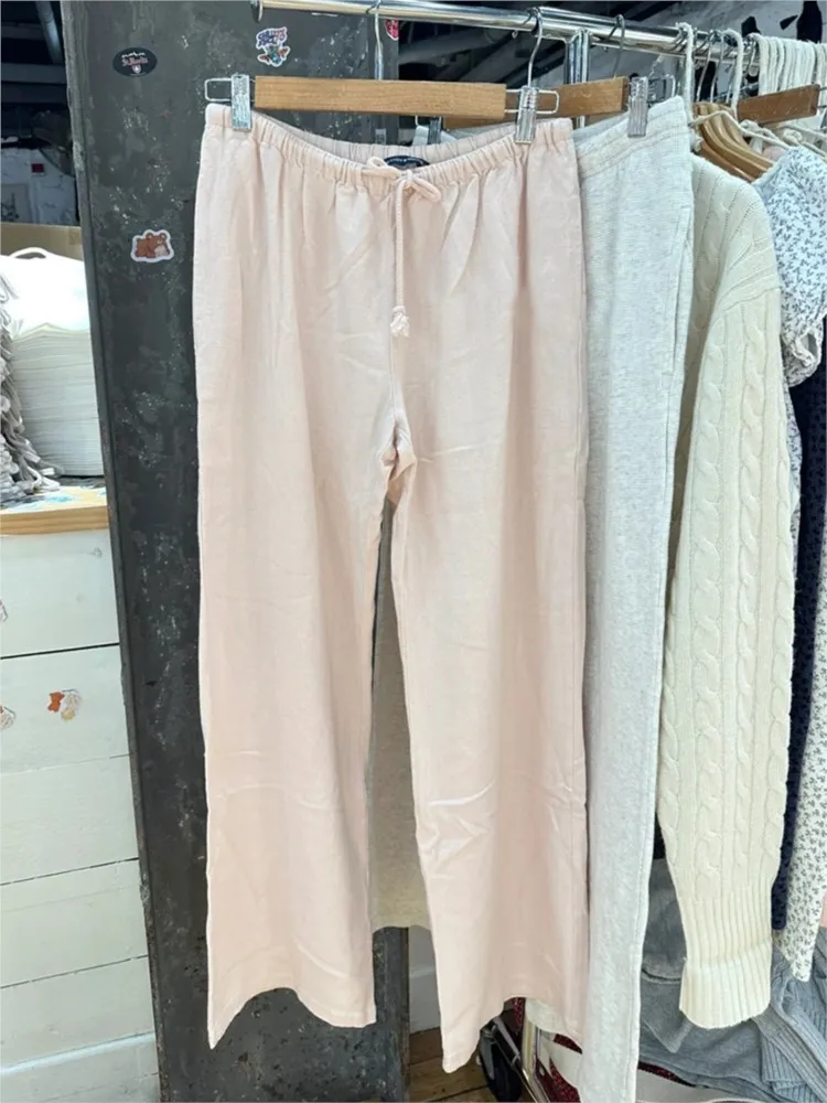 Streetwear Drawstring Straight Sweatpants Women Autumn Cotton Casual High Waist Trousers Vintage Sweet Pink Sport Y2K Long Pants