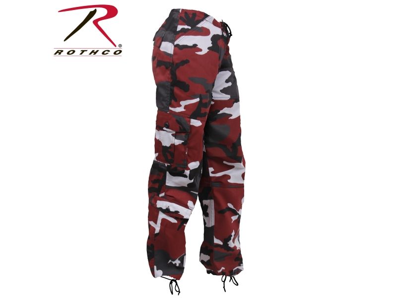 Rothco Paratrooper Colored Camo Fatigues - Women's Red Camo Small 3782-RedCamo-S. These uniform pants are made with lightweight durable cotton/polyester material that breathes and holds well while maintaining a shape. The uniform pants are feature...  Read more