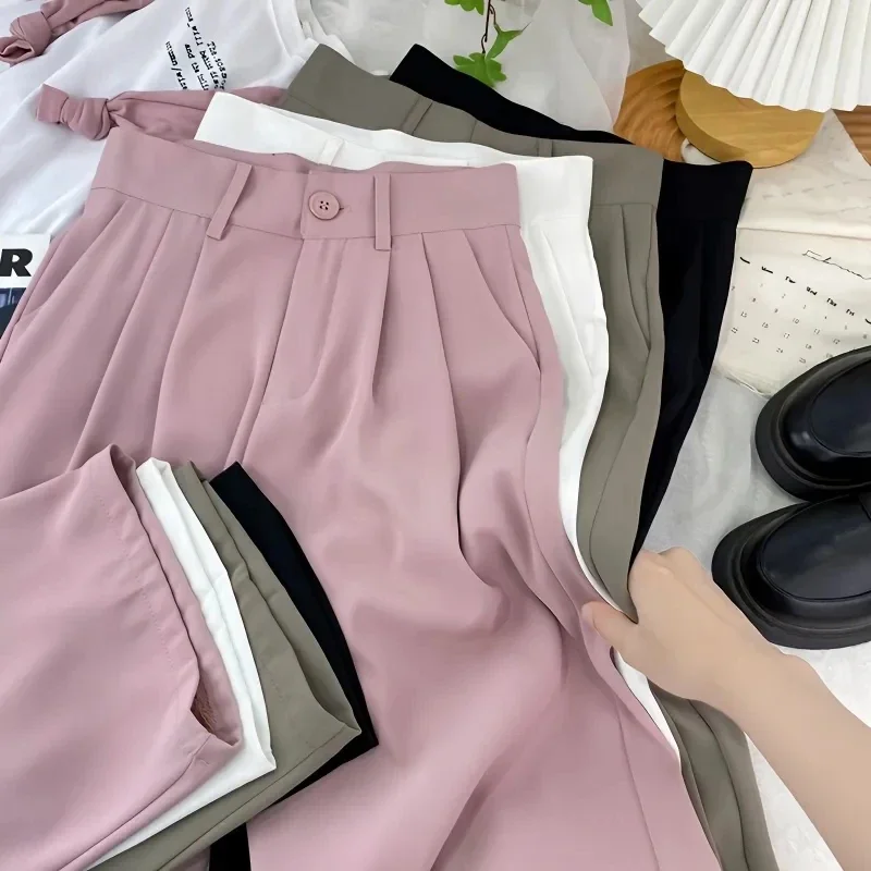 Seoulish Autumn Elegant Women's Wide Leg Pants 2024 New Korean Solid Button Casual Loose Office Full Length Trousers Female  Read more