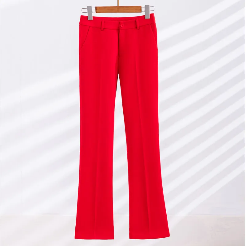 Vintage Office skinny Women Pants Trousers Zipper High Waist Pocket Flare pants formal OL Office Career Capris Work Wear Black