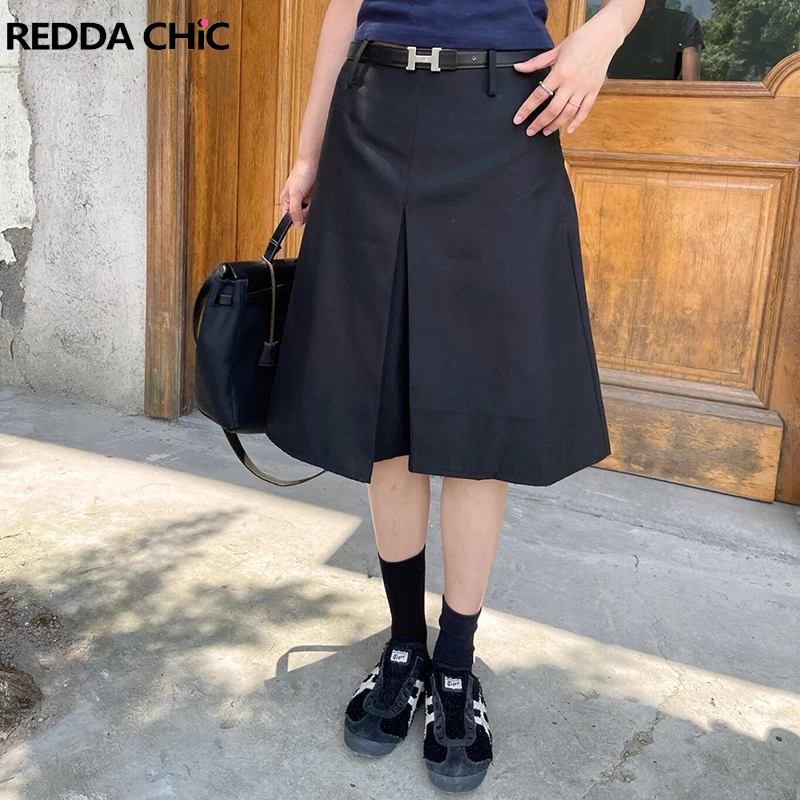 REDDACHiC Pleated Front Bermuda Pants Women Unisex Jorts Loose Casual Solid Black Low Waist Knee Long Shorts Office Work Clothes